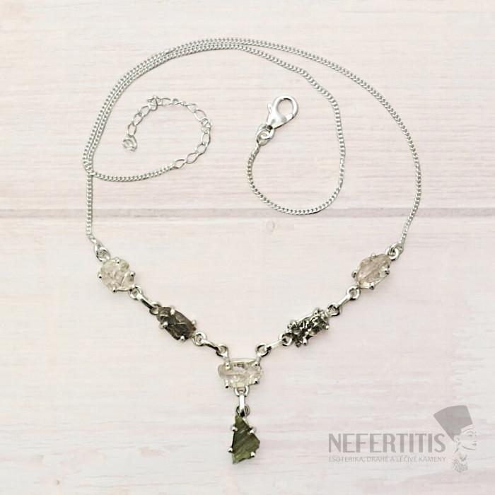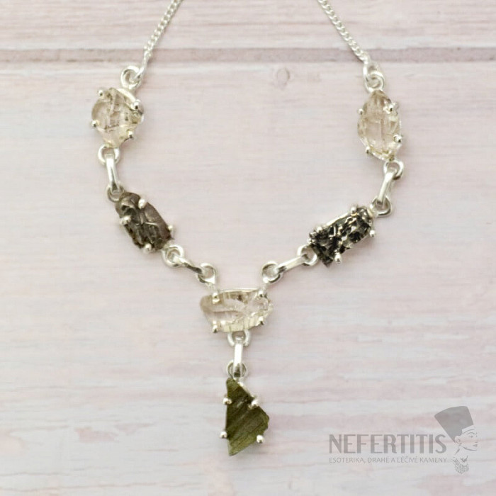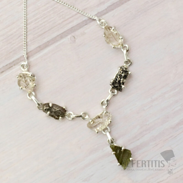 Vltavín, Herkimer diamant a meteorit náhrdelník striebro Ag 925 LOT40
