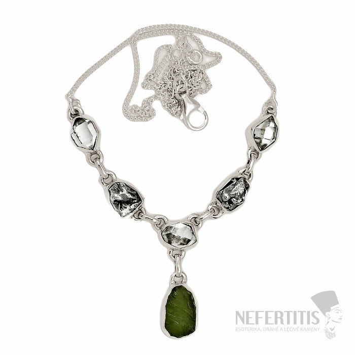Vltavín, Herkimer diamant a meteorit náhrdelník striebro Ag 925 N50