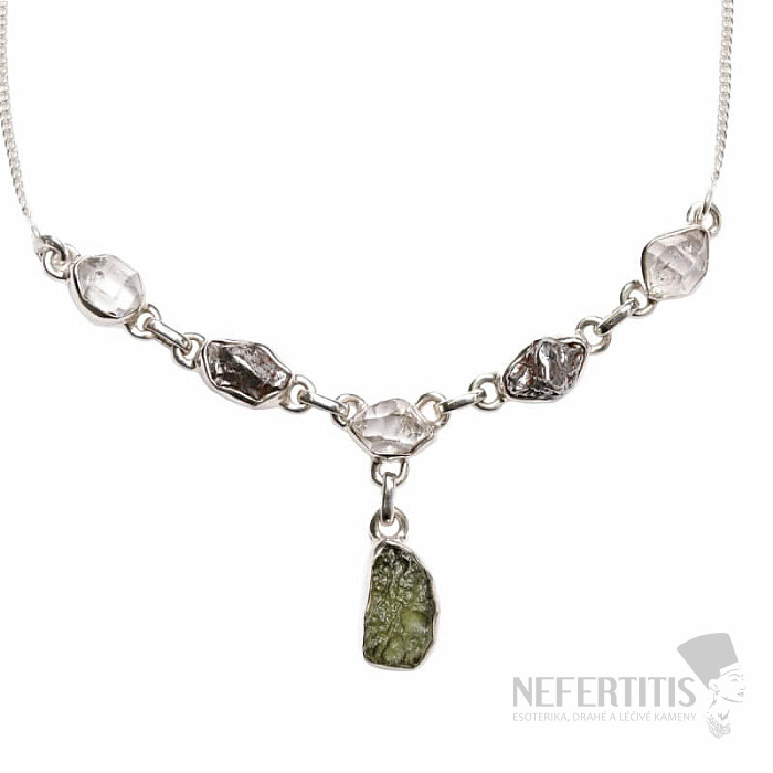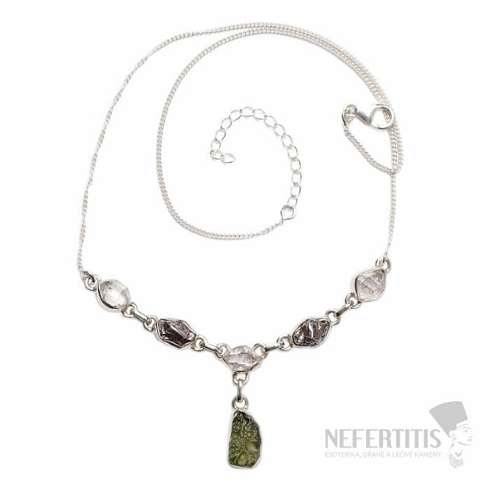Vltavín, Herkimer diamant a meteorit náhrdelník striebro Ag 925 N67