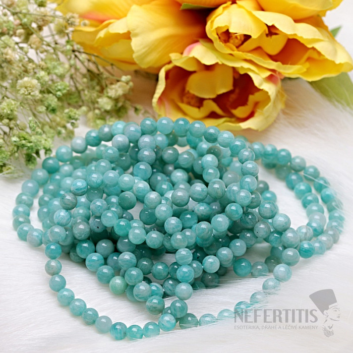 Detský náramok z amazonitu A kvality je jemný a krásny šperk z minerálu, ktorý zaujme svojou sviežou zelenou farbou a prirodzenou kresbou kameňa. Amazonit je obľúbený minerál známy svojimi upokojujúcimi odtieňmi, ktoré pripomínajú farbu vody a prírody. Korálky majú veľkosť cca 6 mm. Ilustratívne vyobrazenie prírodného materiálu, kedy sa môže líšiť farebnosť a štruktúra kameňa od sprievodných fotografií. Vždy však dostanete náramok porovnateľnej kvality.
