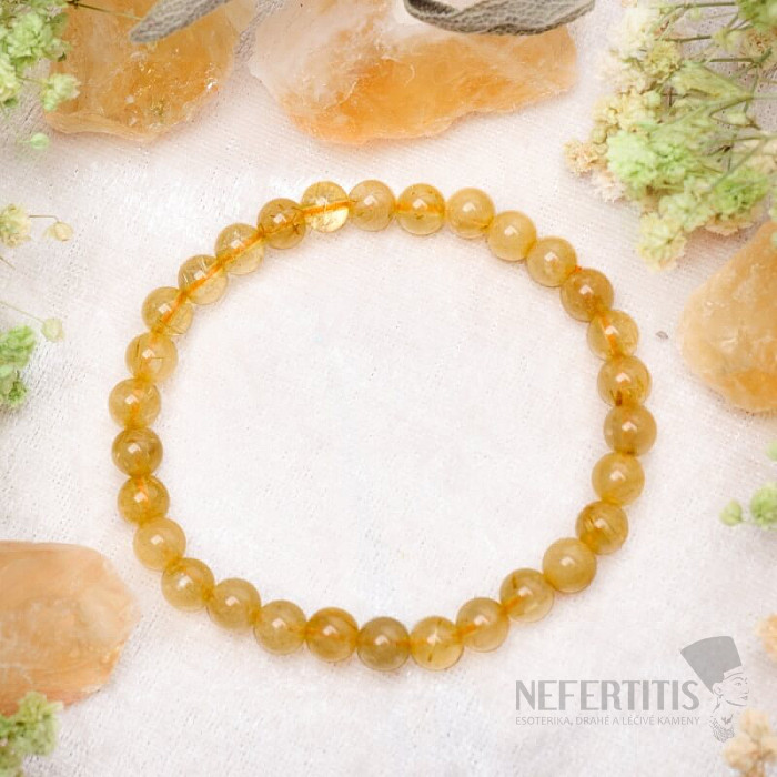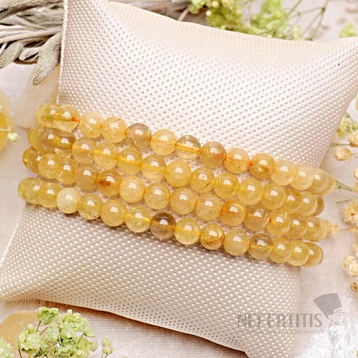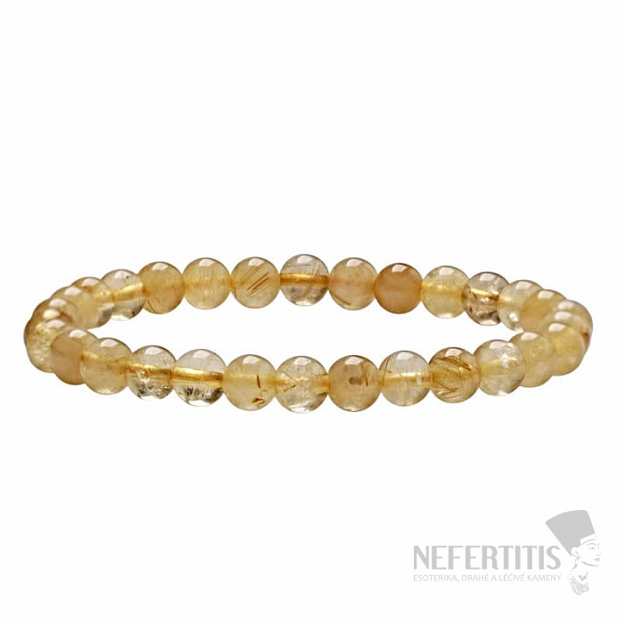 Luxusný náramok zo sagenitu (zlatého rutilu v kremeni) očarí svojou jedinečnou kresbou zlatých ihličiek uzavretých v čírom kremeni. Každá korálka je malým prírodným originálom, ktorý dodáva náramku elegantný a zároveň výnimočný vzhľad.