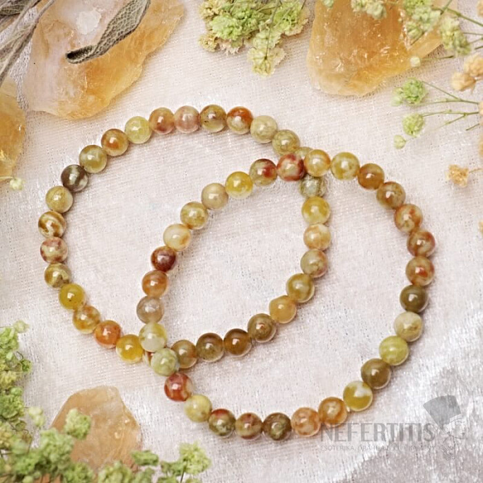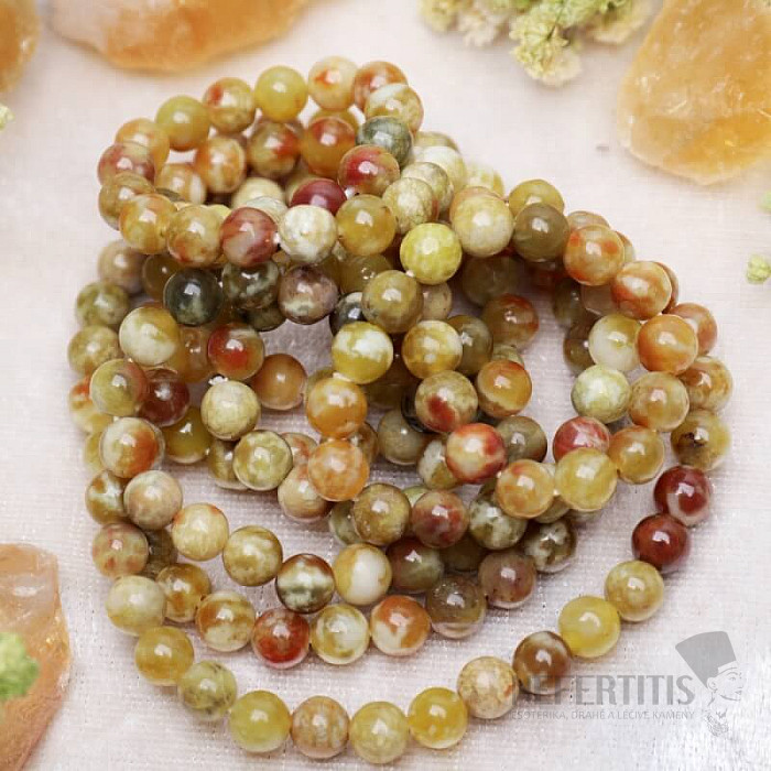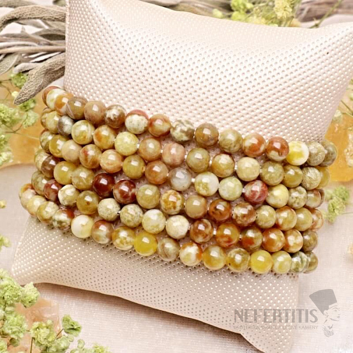 Korálky sú starostlivo spracované a navlečené s dôrazom na pohodlie pri nosení. Každý náramok je originál, pretože kresba a farebnosť serpentínu sa prirodzene líšia kus od kusu. Ilustratívne vyobrazenie.