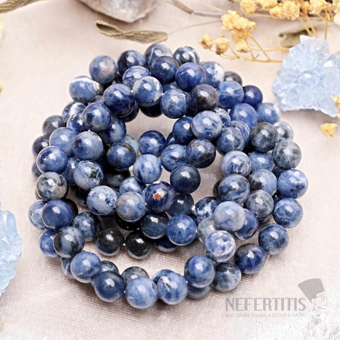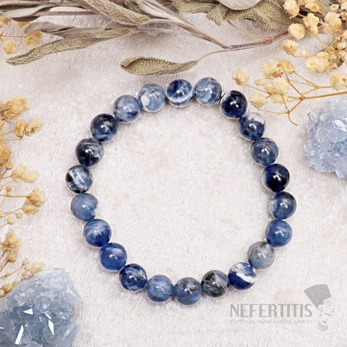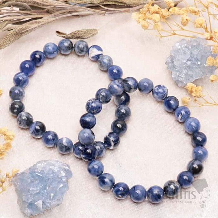 Štýlový náramok z prírodného sodalitu v sýtych modrých tónoch s jemnou bielou kresbou je výrazným, a napriek tomu harmonickým doplnkom. Korálky o veľkosti 8 mm dodávajú náramku plnší a sebavedomý vzhľad, vďaka ktorému skvele vynikne na zápästí. Je vhodný pre ženy aj pre mužov.