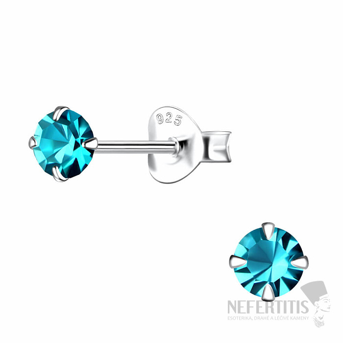 00533 Strieborné náušnice kôstky so zirkónmi 4mm BLUE