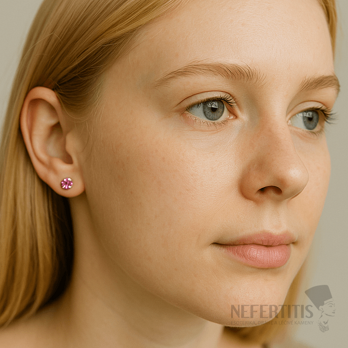 Tieto jemné strieborné náušnice typu pecky sú vyrobené zo striebra rýdzosti 925/1000 a osadené okrúhlymi zirkónmi v ružovej farbe s priemerom 4 mm. Ich hmotnosť činí 0,37 g, čo z nich robí ľahký a pohodlný šperk na každodenné nosenie. Puzetové zapínanie.