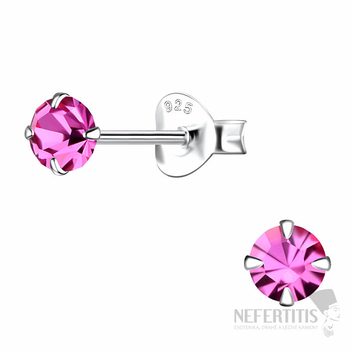 00536 Strieborné náušnice pecky so zirkónmi 4mm PINK