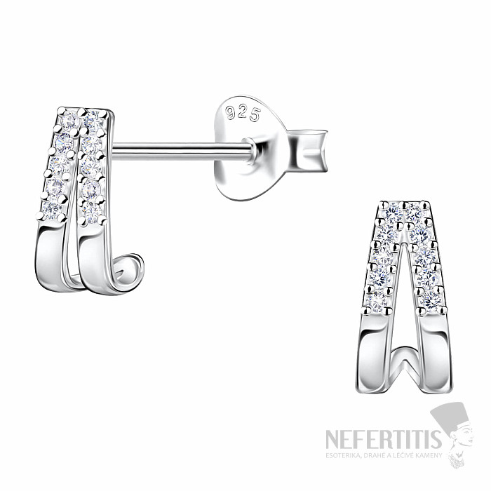 34123 Strieborné náušnice kôstky so zirkónmi DOUBLE LINE