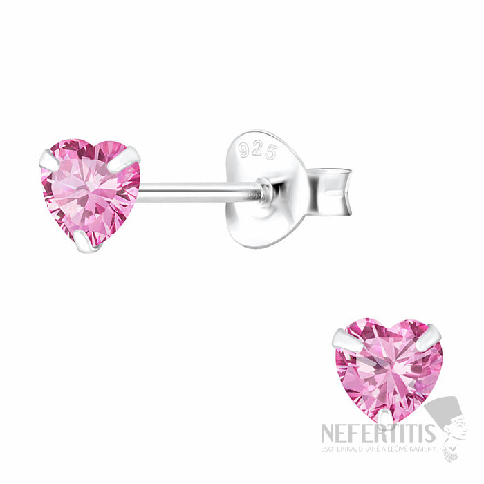03691 Strieborné náušnice kôstky so zirkónmi 4mm PINK HEART