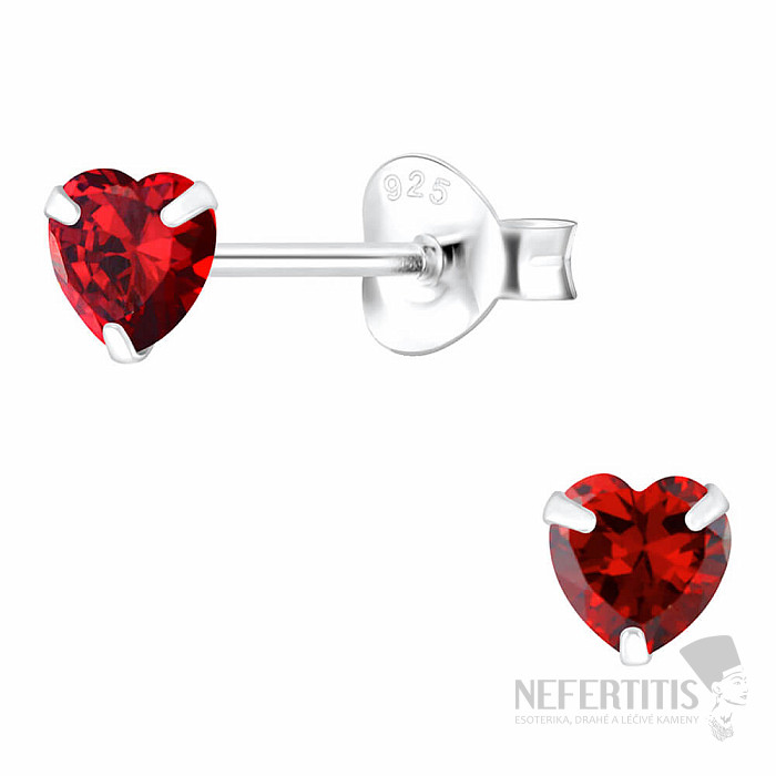 03693 Strieborné náušnice kôstky so zirkónmi 4mm RED HEART