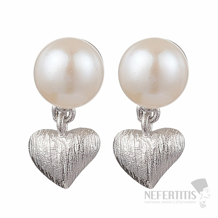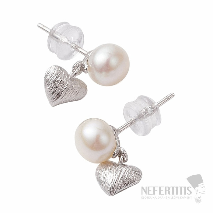 Strieborné náušnice s perlou a srdiečkom