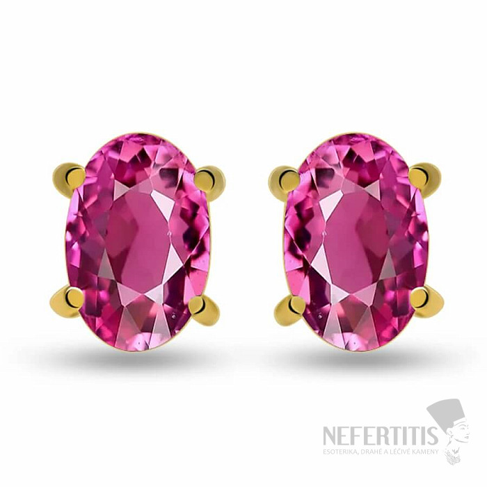 Náušnice sú vyrobené zo striebra 925/1000 a následne pozlátené 14k žltým zlatom , ktoré krásne kontrastuje s ružovým kameňom a dodáva šperku luxusný vzhľad. Veľkosť kameňov 4 mm zaisťuje subtílnu eleganciu vhodnú na každodenné nosenie, zatiaľ čo hmotnosť 0,5 g garantuje absolútne pohodlie.