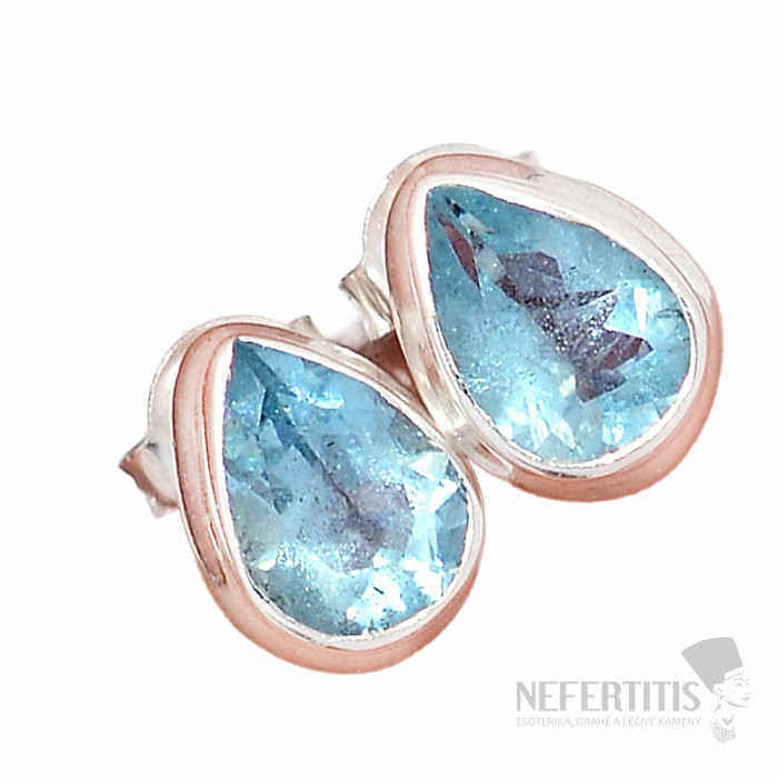 Akvamarín brúsený náušnice kôstky striebro Ag 925 E120