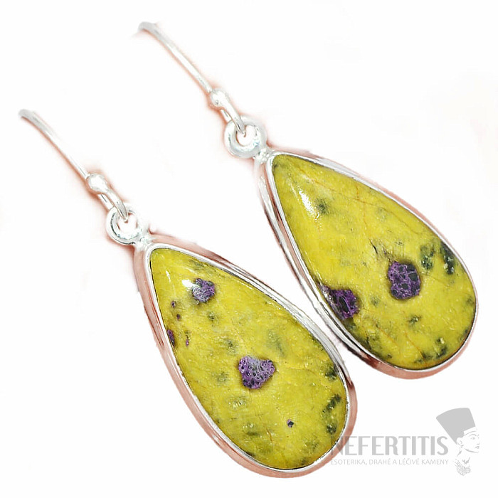 Strieborné náušnice so vzácnym Atlantisitom. Atlantisit, zvaný tiež stichtit, je vzácny kameň, ktorý sa ťaží v jedinej bani na svete. Ponuka tohto kameňa na trhu je značne obmedzená. Pôvab a krása jeho sýto fialovej farby v zelenom kameni vás očarí na prvý pohľad. Ag 925. Kupujete priamo vyobrazený pár. Uvedená váha je celého páru.