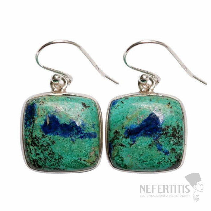 Exkluzívne, očarujúce strieborné náušnice s azuritom v malachite. Kombinácia azuritu s malachitom pripomínajúca pohľad na planétu Zem z vtáčej perspektívy robí tento šperk nevšedným a veľmi dekoratívnym. Ag 925. Kupujete priamo vyobrazený šperk.