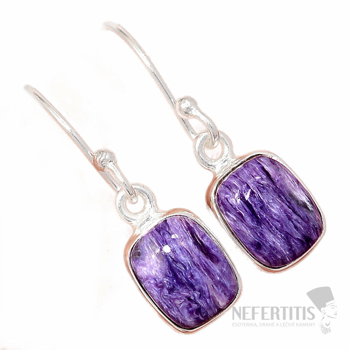 Výrazné strieborné náušnice z čaroitu výbornej kvality. Ag 925. Nádherne fialovo sfarbený čaroit vás očarí nielen svojim hodvábnym leskom, ale aj premenou kresby v meniacom sa svetle. Uvedená váha je celého páru. Kupujete priamo vyobrazený šperk.