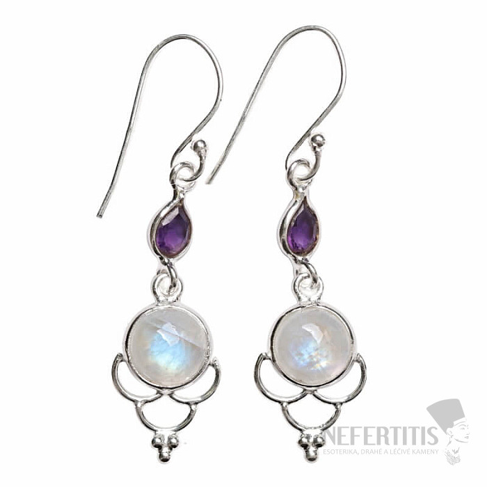 Atraktívne strieborné dizajnové náušnice s dúhovým mesačným kameňom a brošeným topazom. Ag 925. Náušnice sú neprehliadnuteľné nielen kvôli atraktívnemu tvaru, ale najmä kvôli ich výnimočne krásnej a výraznej "hre dúhy"… viac »