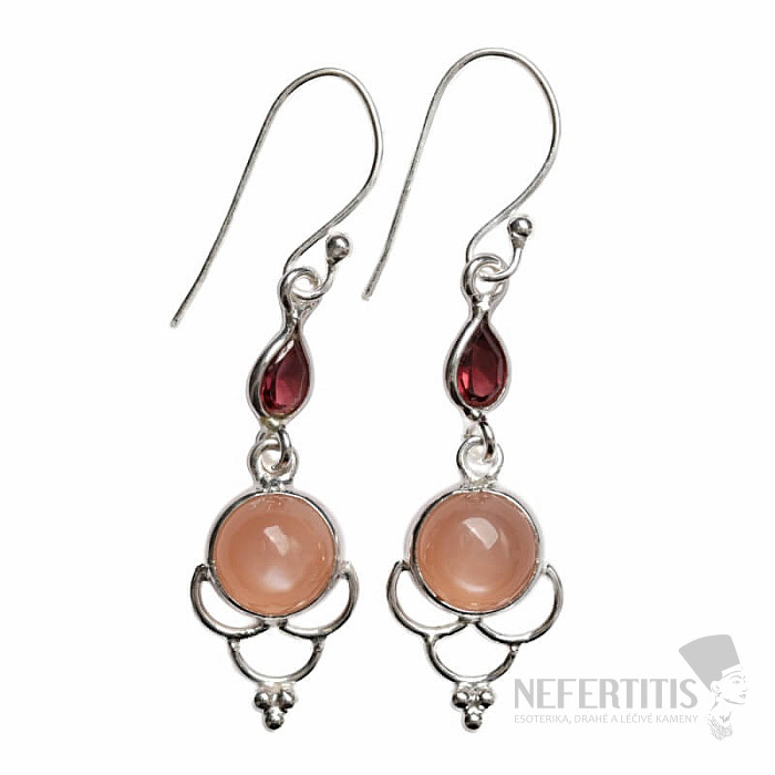 Atraktívne strieborné dizajnové náušnice s mesačným kameňom oranžovej farby a brošeným granátom. Ag 925. Náušnice vás okúzlia už na prvý pohľad hodvábne jemným leskom na povrchu prvotriedneho mesačného kameňa. Uvedená váha je celého páru. Kupujete priamo vyobrazený pár.