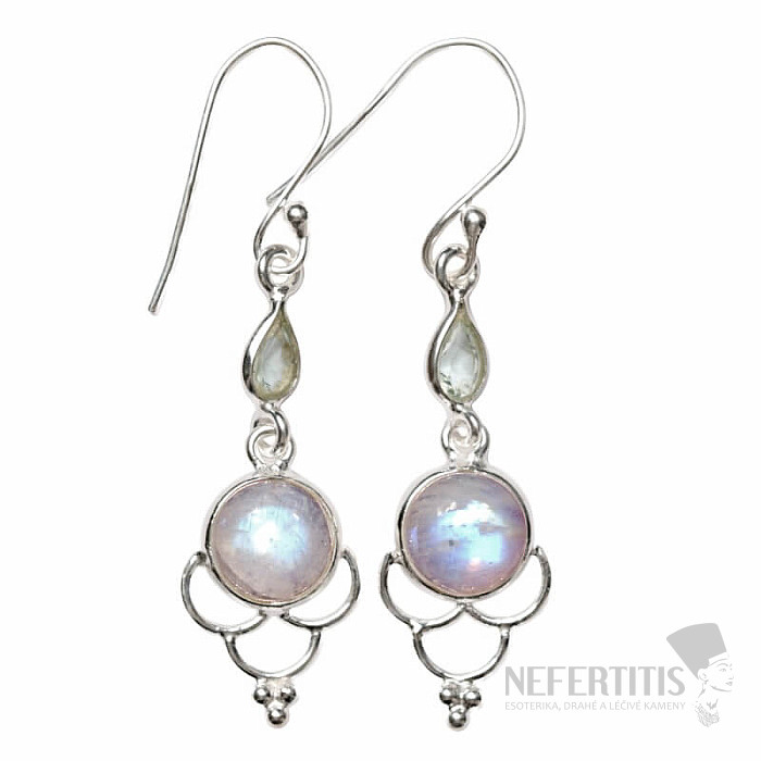 Atraktívne strieborné dizajnové náušnice s dúhovým mesačným kameňom a brošeným topazom. Ag 925. Náušnice sú neprehliadnuteľné nielen kvôli atraktívnemu tvaru, ale najmä kvôli ich výnimočne krásnej a výraznej "hre dúhy"… viac »