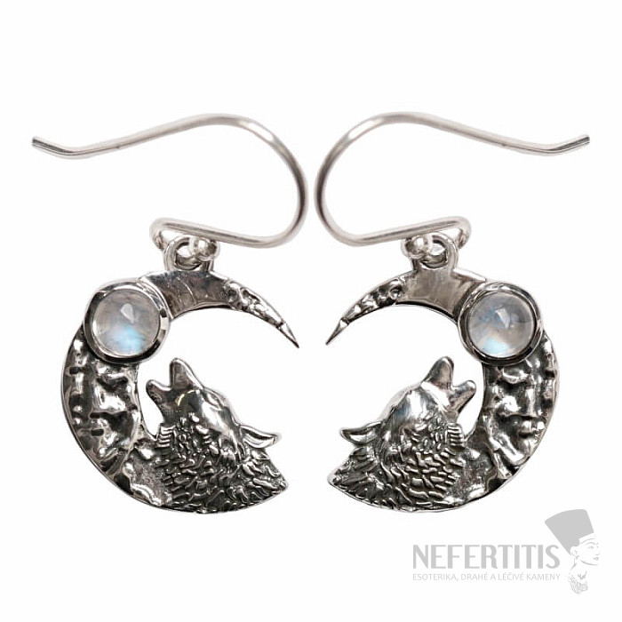 Dizajnové náušnice mesačný kameň dúhový striebro Ag 925 E634