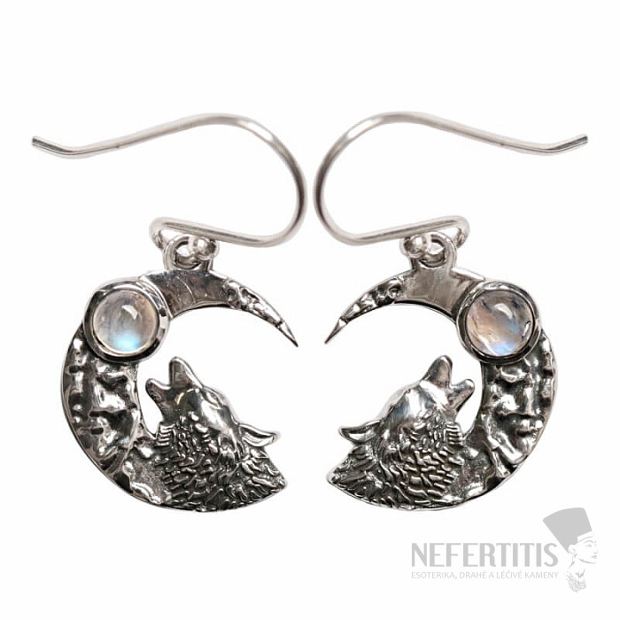 Dizajnové náušnice mesačný kameň dúhový striebro Ag 925 E636
