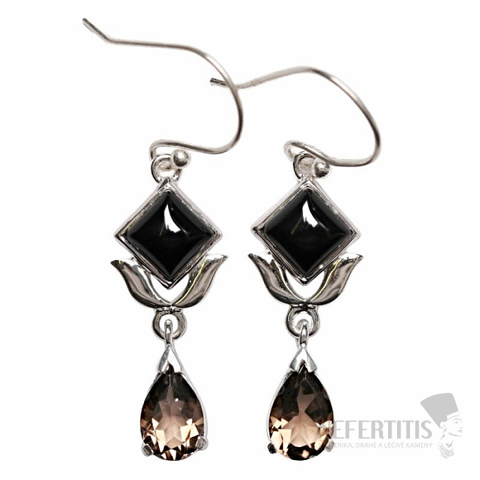 Atraktívne strieborné dizajnové náušnice s onyxom a brúsenou záhnedou. Ag 925. Uvedená váha je celého páru. Kupujete priamo vyobrazený šperk.