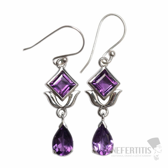 Atraktívne strieborné dizajnové náušnice s brúsenými ametystmi. Ametyst , kameň mesiaca februára, je tradične spájaný s pokojom, ochranou a vnútornou rovnováhou, je cenený pre svoju krásnu fialovú farbu aj harmonizačné účinky. Ag 925. Uvedená váha je celého páru. Kupujete priamo vyobrazený pár.