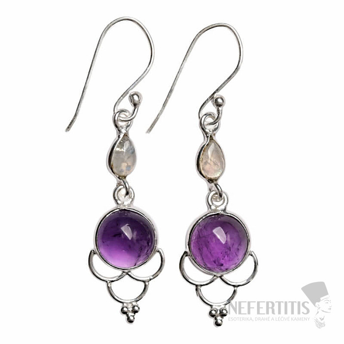 Atraktívne strieborné dizajnové náušnice s kabošonmi ametystu a dúhovými mesačnými kameňmi. Ag 925. Uvedená váha je celého páru. Kupujete priamo vyobrazený pár.