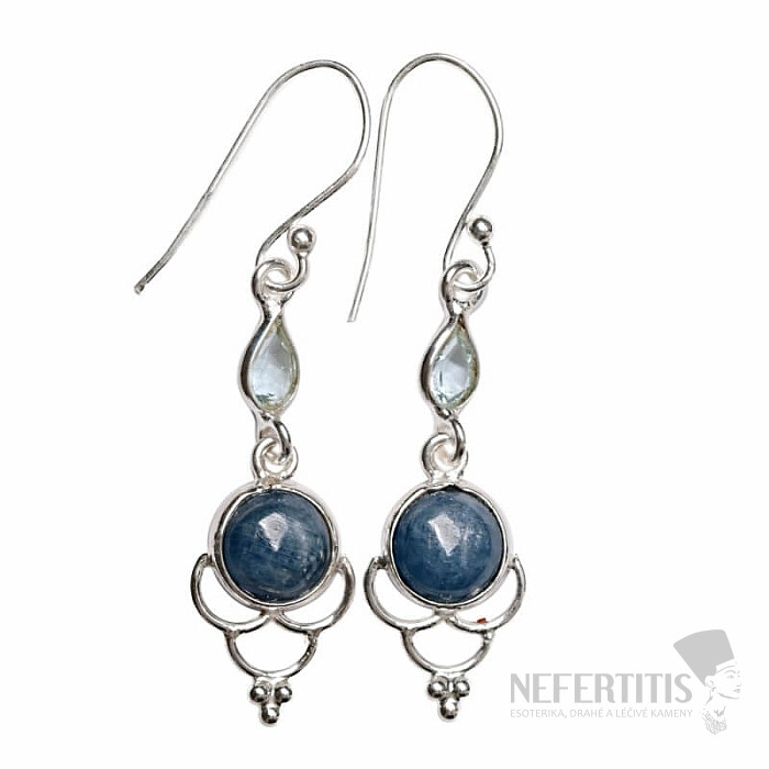Atraktívne strieborné dizajnové náušnice s nádherne sfarbenými modrými kyanitmi a fazetovanými modrými topazmi. Ag 925. Uvedená váha je celého páru. Kupujete priamo vyobrazený šperk.