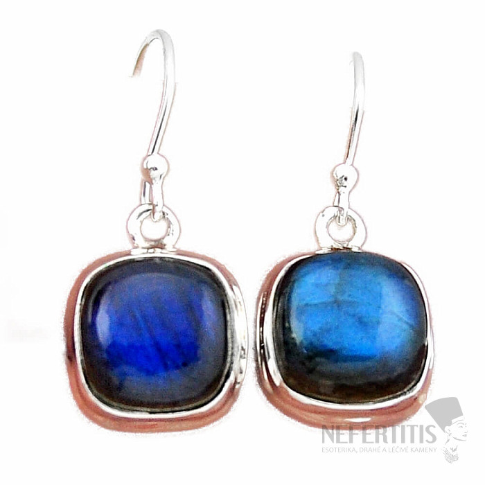 Krásne strieborné náušnice s labradoritmi s výraznou hrou farieb, v ktorej sa pri dopade svetla kúzelne rozžiari jasná modrá farba. Ag 925. Uvedená váha je celého páru. Kupujete priamo vyobrazený šperk.