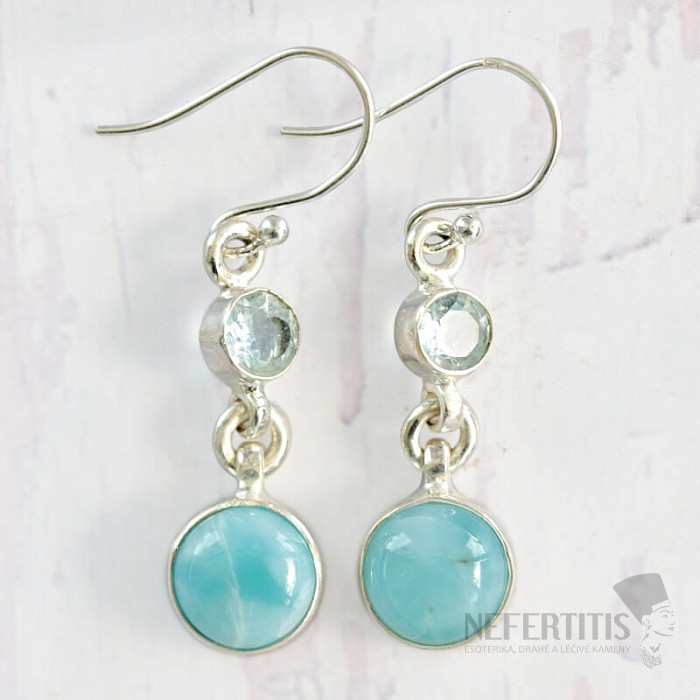 Elegantné strieborné náušnice s kabošonmi larimaru, ktorý pripomína hru slnečných lúčov na hladine mora, a brúsenými topazmi. Ag 925. Uvedená váha je celého páru. Kupujete priamo vyobrazený šperk.