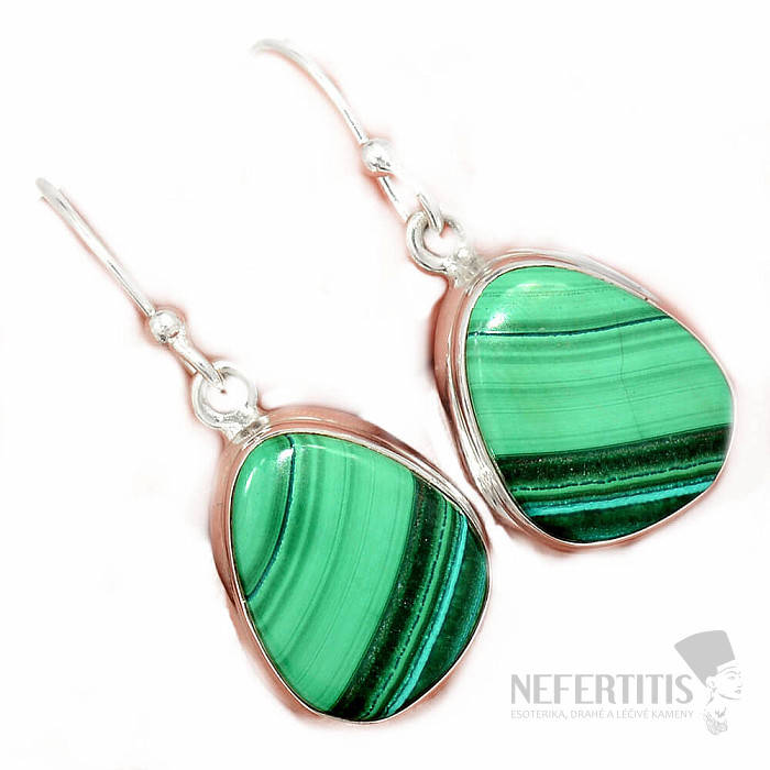 Výrazné strieborné náušnice z malachitu. Ag 925. Vďaka typickej zelenej farbe a kresbe tohto krásneho kameňa sú náušnice nevšedným a výrazným doplnkom na rôzne príležitosti. Kupujete priamo vyobrazený pár. Uvedená váha je celého páru.