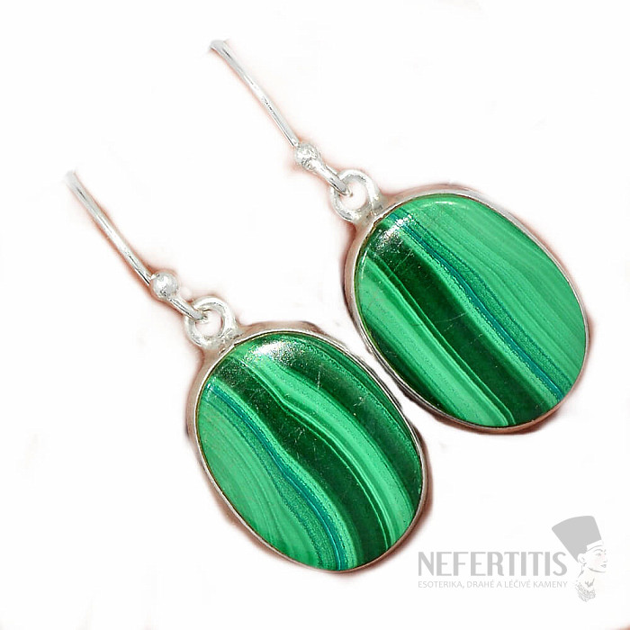 Výrazné strieborné náušnice z malachitu. Ag 925. Vďaka typickej zelenej farbe a kresbe tohto krásneho kameňa sú náušnice nevšedným a výrazným doplnkom na rôzne príležitosti. Kupujete priamo vyobrazený pár. Uvedená váha je celého páru.
