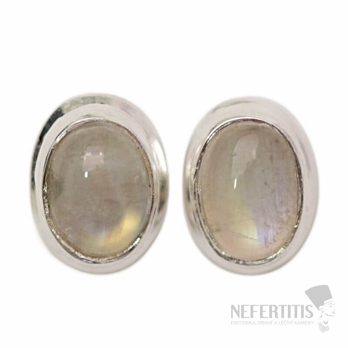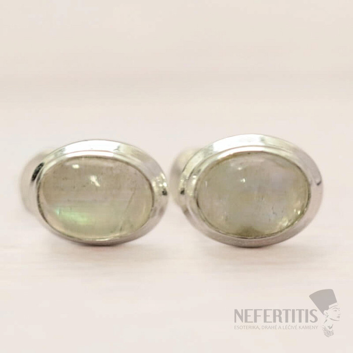 Mesačný kameň dúhový náušnice kôstky striebro Ag 925 E1021