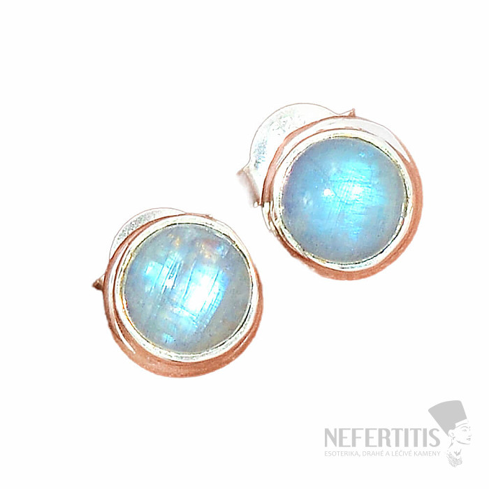 Mesačný kameň dúhový náušnice kôstky striebro Ag 925 E1022