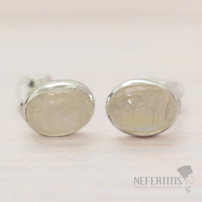 Mesačný kameň dúhový náušnice kôstky striebro Ag 925 E1061