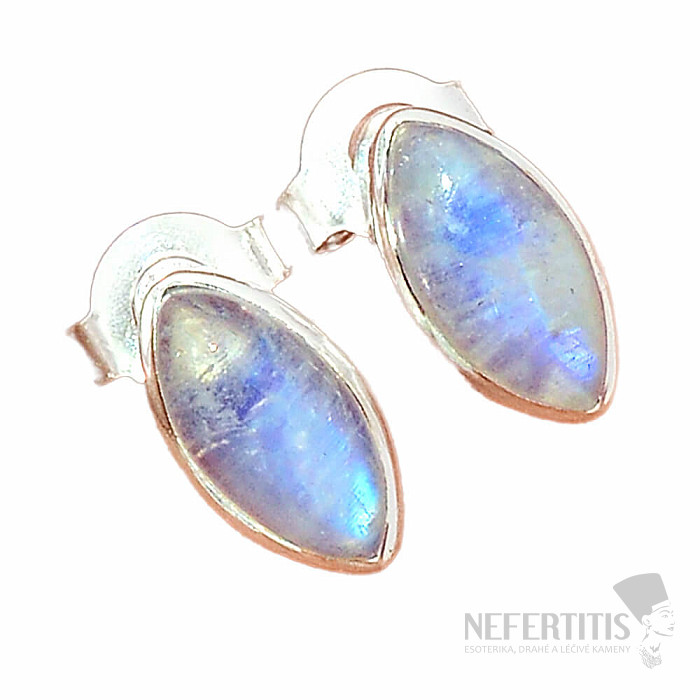 Mesačný kameň dúhový náušnice kôstky striebro Ag 925 E1077