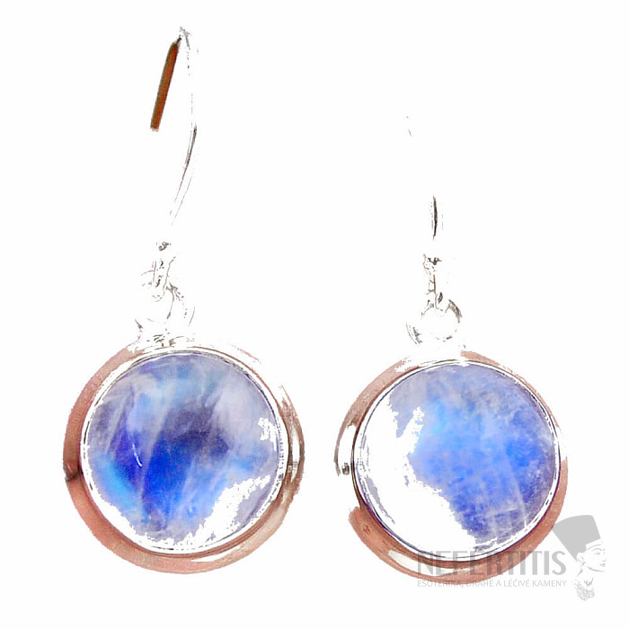 Strieborné náušnice s dúhovým mesačným kameňom. Ag 925. Náušnice sú neprehliadnuteľné nielen kvôli atraktívnemu tvaru, ale najmä kvôli ich výnimočne krásnej a výraznej "hre dúhy". Kupujete priamo vyobrazený pár. Uvedená váha je celého páru.
