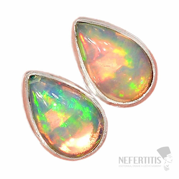 Očarujúce strieborné náušnice s etiópskym opálom s krásnou hrou farieb, predovšetkým zelenou, oranžovou a červenou. Ag 925. Pôsobivý a elegantný šperk, od pohľadu navodzujúci radosť a pocity harmónie. Etiópske opály oproti austrálskym opálom doslova hýria až neónovo žiarivými odleskami farieb. Hoci na prvý pohľad na to nevyzerajú, ohňostroj farieb, ktorý z opálu v týchto náušniciach vytryskne pri každom dopade svetla, očarí nielen vás, ale celé vaše okolie. Uvedená váha je celého páru. Kupujete priamo vyobrazený pár.
