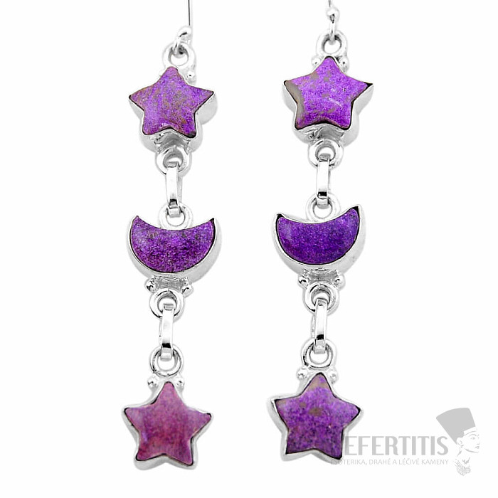 Krásne strieborné náušnice so vzácnym purpuritom. Ag 925. Sýtu purpurovo fialovú farbu týchto náušníc nikto neprehliadne! Kupujete priamo tento konkrétny šperk. Purpurit je krásny, vzácny minerál fialovej farby , ktorá… viac »