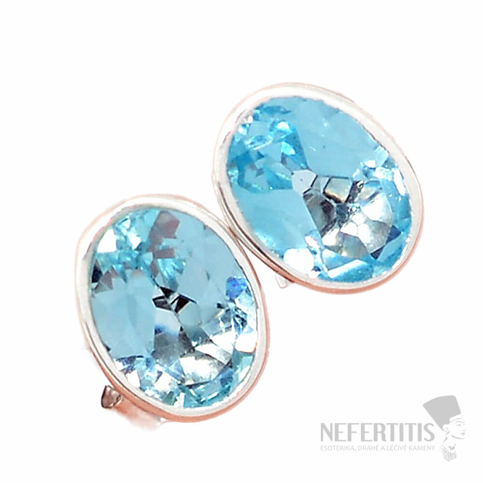 Topaz modrý brúsený náušnice kôstky striebro Ag 925 E607