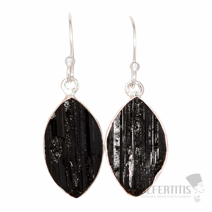 Atraktívne, elegantné, až trochu tajomné náušnice zo surových čiernych turmalínov skorylov v striebre. Čierna farba turmalínu, ktorá krásne kontrastuje s leskom strieborného rámčeka, dáva týmto náušniciam eleganciu a robí z nich veľmi dekoratívny šperk. Čierne surové turmalíny bežne obsahujú prasklinky, je to ich charakteristický rys a dôkaz, že kupujete pravý prírodný tumalín. Ag 925. Kupujete priamo vyobrazený šperk. Uvedená váha je celého páru.