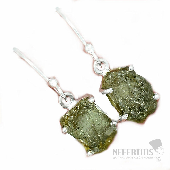 Strieborné náušnice s vltavínom. Ag 925. Vltavín je považovaný za talizman šťastia. Kupujete priamo vyobrazený pár. Uvedená váha je celého páru.