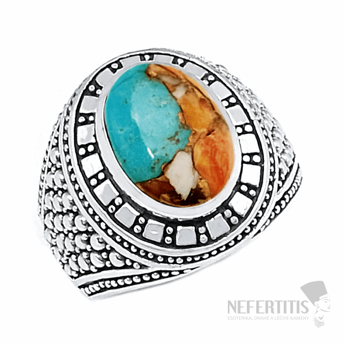 1001 Pánsky strieborný prsteň s tyrkysom Spiny oyster