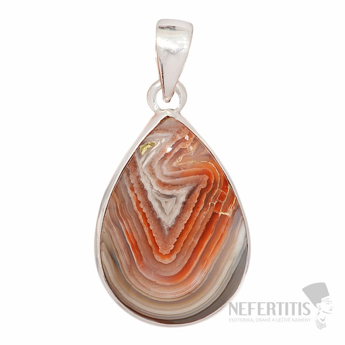 Strieborný prívesok so vzácnym mexickým krajkovým Laguna Lace achátom . Achát krajkový je okúzľujúcim šperkom, pretože vďaka svojim doslova spektakulárnym farbám je Laguna lace achát najviac cenený pruhovaný achát na svete . Tento prívesok má nádhernú kresbu aj tvar, ktoré z neho robia neprehliadnuteľný skvost. Ag 925. Kupujete priamo vyobrazený šperk.