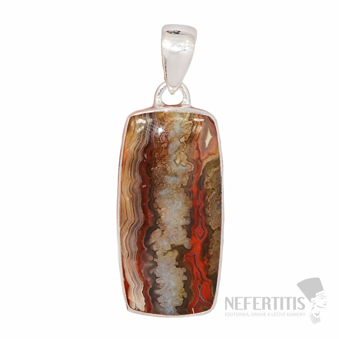 Strieborný prívesok so vzácnym mexickým krajkovým Laguna Lace achátom . Achát krajkový je okúzľujúcim šperkom, pretože vďaka svojim doslova spektakulárnym farbám je Laguna lace achát najviac cenený pruhovaný achát na svete . Tento prívesok má nádhernú kresbu aj tvar, ktoré z neho robia neprehliadnuteľný skvost. Ag 925. Kupujete priamo vyobrazený šperk.