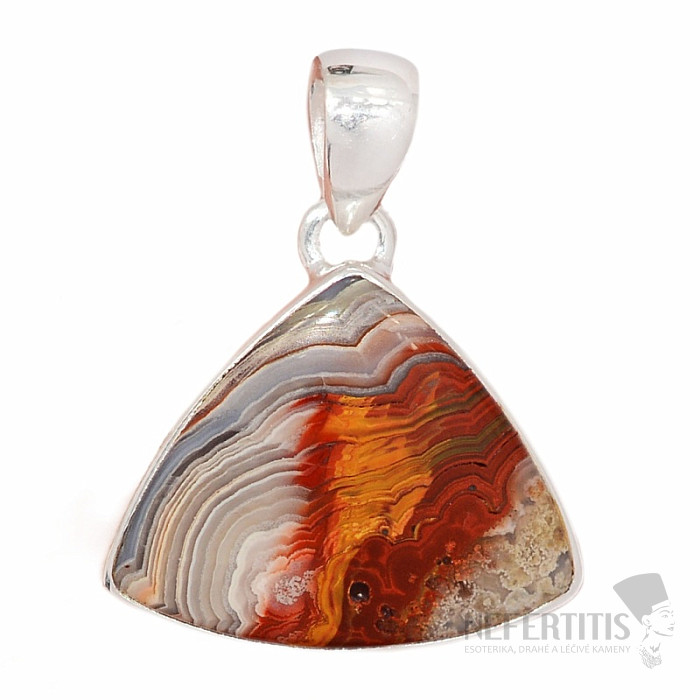Strieborný prívesok so vzácnym mexickým krajkovým Laguna Lace achátom . Achát krajkový je okúzľujúcim šperkom, pretože vďaka svojim doslova spektakulárnym farbám je Laguna lace achát najviac cenený pruhovaný achát na svete . Tento prívesok má nádhernú kresbu aj tvar, ktoré z neho robia neprehliadnuteľný skvost. Ag 925. Kupujete priamo vyobrazený šperk.
