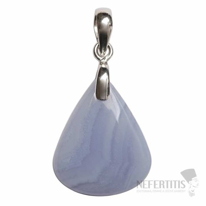 Strieborný prívesok s modrým čipkovým achátom je elegantný šperk, ktorý zaujme jemnou kresbou a upokojujúcimi odtieňmi svetlo modrej farby. Tento prírodný minerál je typický svojimi jemnými pruhmi a krajkovou štruktúrou, vďaka ktorým je každý kameň originálny.