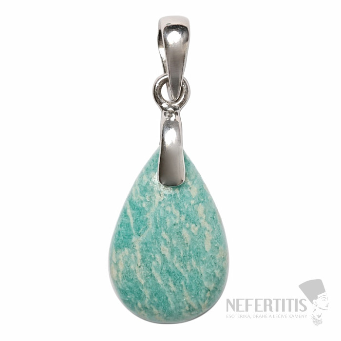 Amazonit je tradične považovaný za kameň pokoja, komunikácie a vnútornej sily. Pomáha harmonizovať emócie, podporuje sebavyjadrenie a prináša pocit pohody. V kombinácii s rhodiovaným striebrom získava šperk elegantný lesk a vyššiu odolnosť proti stmavnutiu.