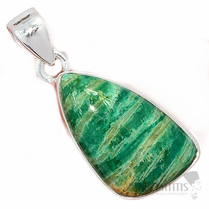 Nádherný strieborný prívesok s krásne prefarbeným amazonitom, ktorý pripomína svojimi podmanivými odtieňmi tyrkysovo zelenej hlbokú priezračnú vodu, navodzuje pokoj duše, pocit bezpečia, rovnováhu a harmóniu. Ag 925. Kupujete priamo vyobrazený šperk.