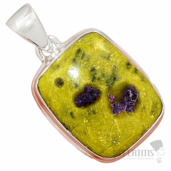 Strieborný prívesok so vzácnym Atlantisitom. Atlantisit, zvaný tiež stichtit, je vzácny kameň, ktorý sa ťaží v jedinej bani na svete. Ponuka tohto kameňa na trhu je značne obmedzená. Pôvab a krása jeho sýto fialovej farby v zelenom kameni vás očarí na prvý pohľad. Ag 925. Veľkosť kameňa spoločne s nevšednou a výraznou farebnou kombináciou farieb robí šperk výnimočným a neprehliadnuteľným. Kupujete priamo vyobrazený šperk.